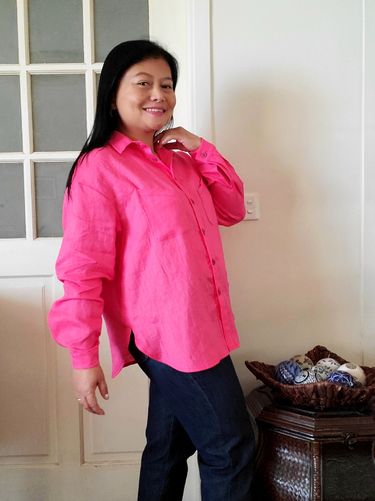 I made this oversized blouse last month for my entry to #magamniftynovember challenge on Instagram. I chose to make a nifty (stylish) blouse to wear daily and I was glad that I had all the things needed in my stash. I had 3 yards of linen fabric in pink color and almost matching the color of the buttons, I still had leftover fabric enough to make a sleeveless blouse for summer later. For the pattern, I used Burdastyle oversized blouse 10/2019 size 40. I omitted the back yoke and welt pocket and also, shortened the length by 8 cm. I was planning to take step-by-step pictures of the progress, but I had a busy life and sewing time was whatever free time I had, sometime in the early morning, mid-day, or late night, so the photo quality at night wasn't so good. So, here are a few progress that I took in the daylight, the most tricky step in the blouse-making was sewing the collar, I pinned and basted a lot before sewing it and the result was good and ...